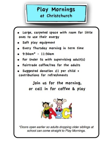 Play Morning is held every Thursday in term time from 9:30 - 11:30am.